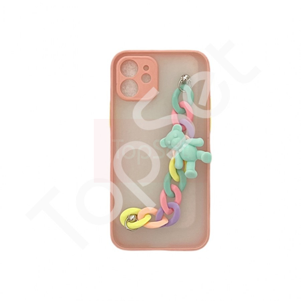 Чехол Teddy с цепочкой и мишкой iPhone 12 Розовый